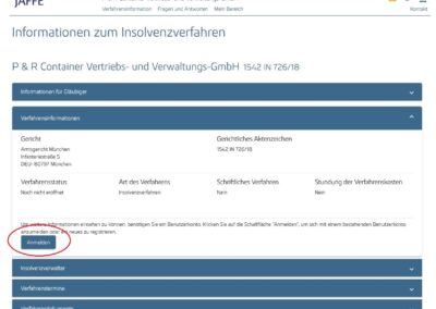 Schritt 2 | Suche P&R Insolvenzverfahren