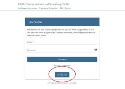 Nachfolgende Anleitung bietet speziell für P&R Gläubiger einen Kurzüberblick mit den wichtigsten Schritten für eine reibungslose Registrierung, Anmeldung, Verknüpfung und Abfrage der Gläubigerdaten.